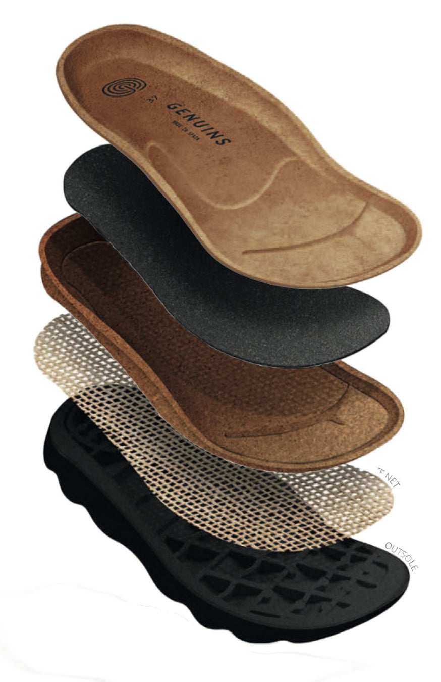 解剖学に基づいて開発されたGENUINS独自のフットベッドを、主な商品に採用しています。クッション性が高く、足の健康をサポートする人間工学に優れた形状により、快適な歩行を約束します。