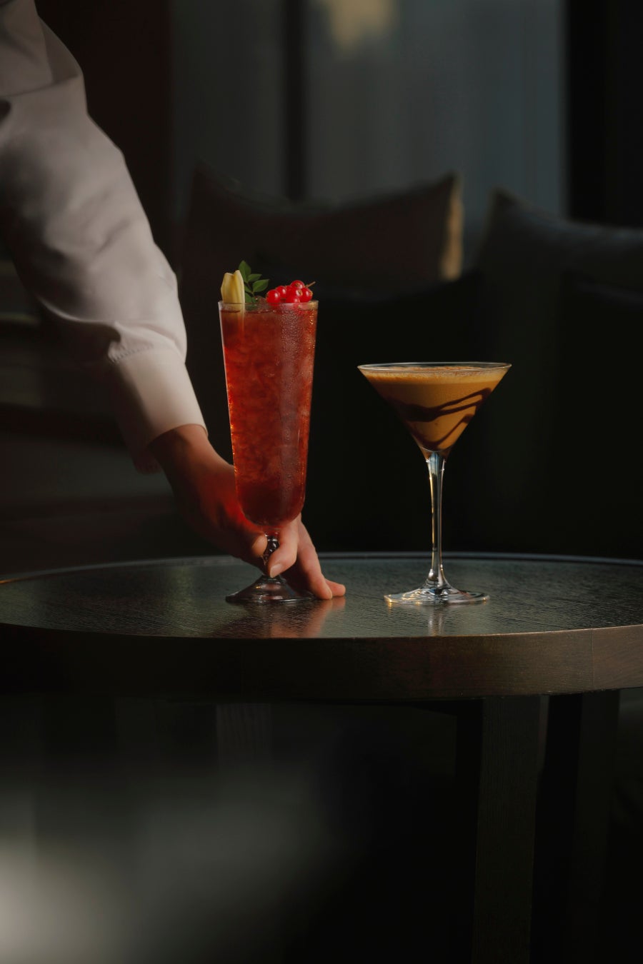 2025年11月17日(月)から2026年1月31日(土)まで、3種類のシーズナルカクテルをご提供いたします。この冬のシグネチャーカクテル「トゥルーノース」は、国産ウイスキーを使用したマンハッタンスタイルです。ハーブをグラスに添え、グラスに注いだ瞬間に立ち上る香りが、ホテルの麓にある大手町の森を連想させます。フェスティブシーズンの訪れを感じさせる赤ワインベースの「スカーレットジング」は、スパイスの香りとジンジャービアのハーモニーが温もりをもたらす一杯。マスカルポーネとエスプレッソリキュールをシェイクした「ティラミスマティーニ」は、濃厚な口当たりで、甘く心地よい余韻が広がります。