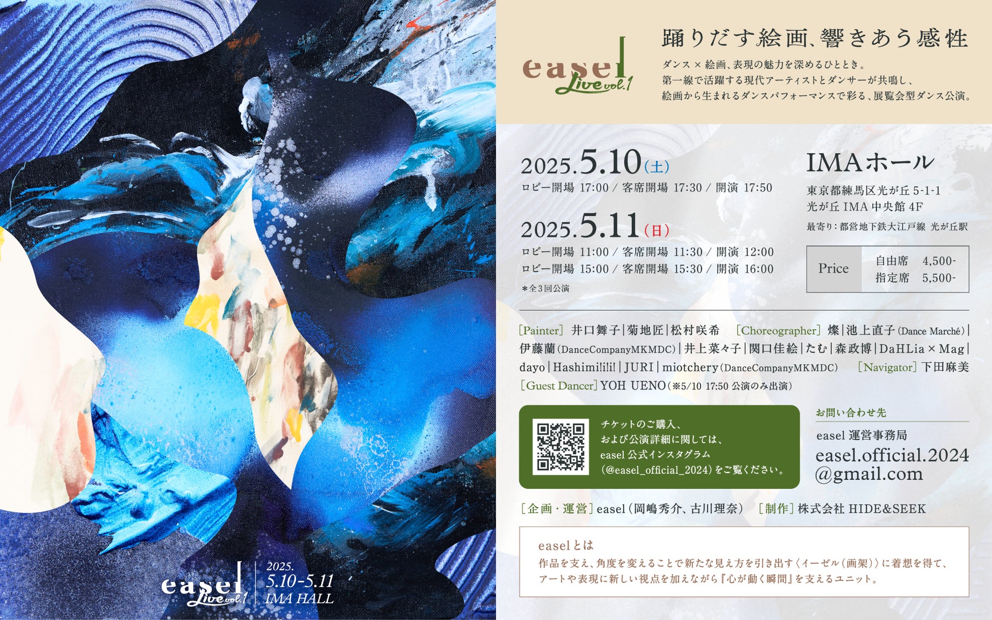 また本活動の一環として、2025年5月10日と11日に行われる“ダンスと絵画の融合”イベント「easel live vol.1」に協賛し、本イベントに参加される各アーティストの皆さんや来場される皆さんへ当社商品の提供を行います。