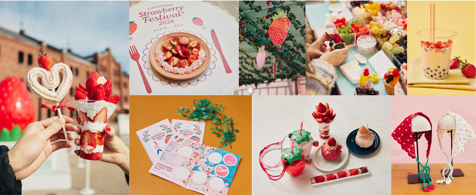 『Yokohama Strawberry Festival 2026』インフォメーション(無料エリア)/横浜赤レンガ倉庫1号館/横浜ワールドポーターズ/横浜ハンマーヘッド/MARK IS みなとみらい/Colette・Mare/横浜マリンタワー