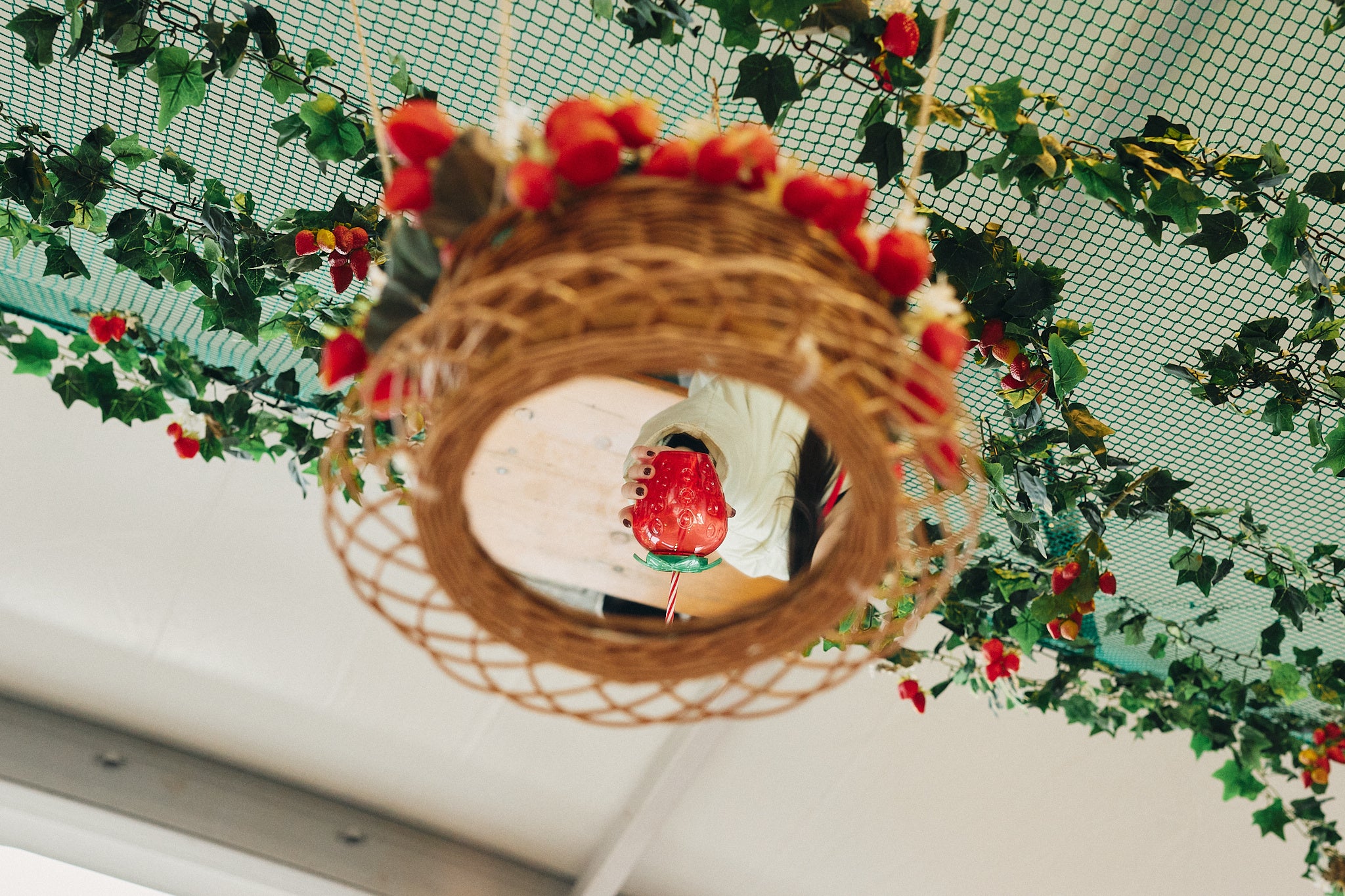 会場には、いちご好きの皆様をお出迎えすべく、いちごのフォトスポットをご用意しています。会場入り口付近には、本イベントを象徴する毎年恒例の“巨大いちごオブジェ”や、「横浜春節祭2026」とコラボした中国伝統工芸の技が光る“いちご型のランタンオブジェ”など、ダイナミックないちごのフォトスポットが堂々と構えます。また、大型テント内には、ぬいぐるみを置いて「ぬい撮り」をしたり、手持ちスイーツを置いたりできるいちごをあしらった額縁や、スイーツや自分たちを上から映すことができる天井に吊り下げられカゴ型の鏡、天井に広がる緑の苺畑など、写真を撮るだけでも可愛い空間が広がっています。