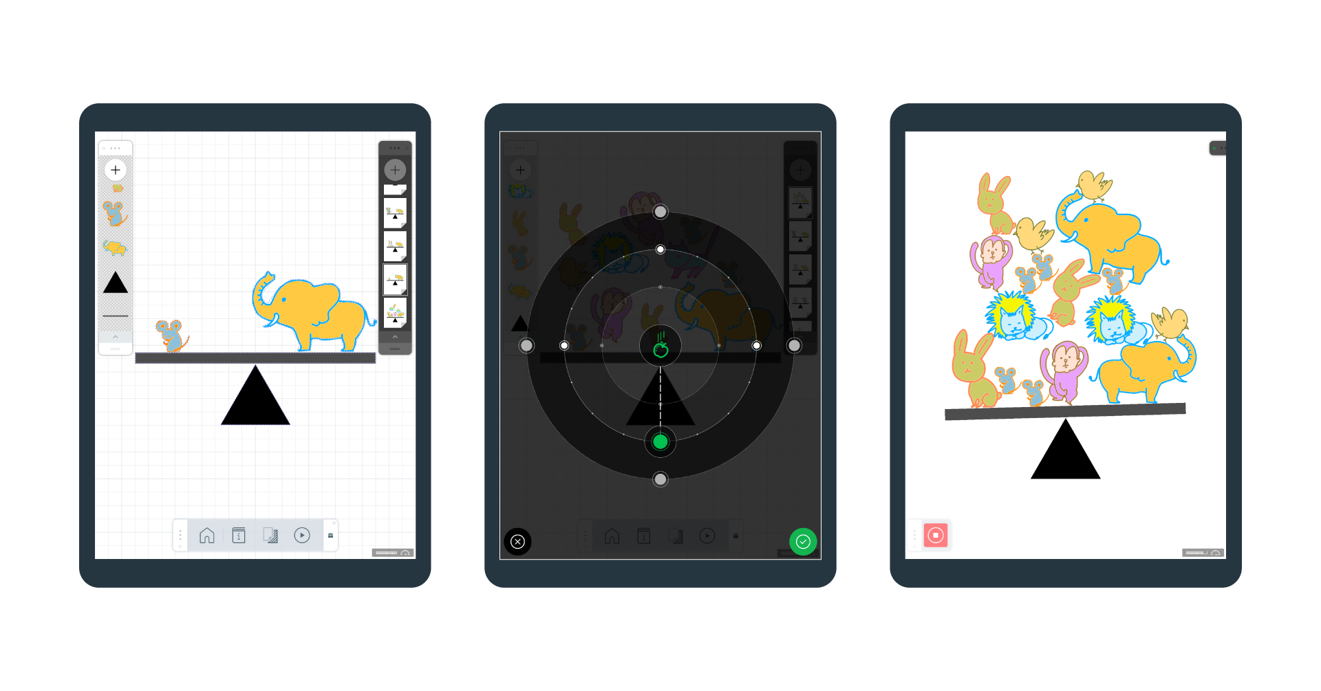・積み木や絵の具のお絵かきなど本来道具を準備する必要があるアクティビティもタブレット一つで体験できます。