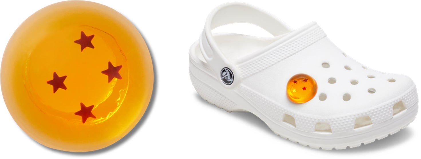 「ドラゴンボール Z クラシック クロッグ」は悟空の道着の色をイメージし、フットウェア全体にドラゴンボール柄をあしらったアイテムです。ヒールストラップには悟空の道着の帯が3Dデザインされ、スーパーサイヤ人化した悟空や筋斗雲、神龍(シェンロン)、ドラゴンボール等のジビッツ™ チャームが付属しています。