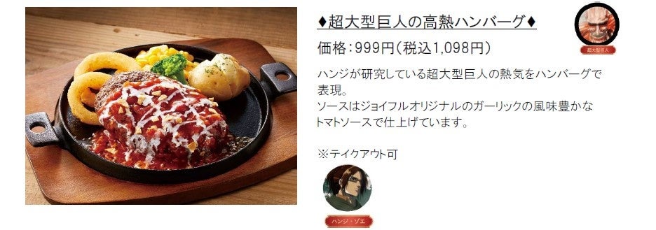 この機会に「進撃の巨人」の世界観たっぷりのジョイフルオリジナルメニューをご賞味下さい。