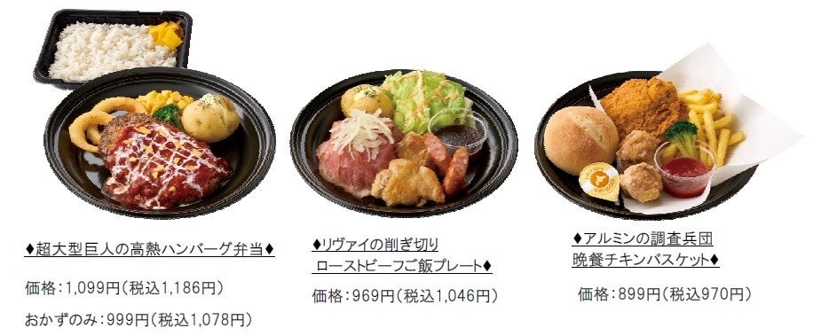 キャンペーン期間中、アニメ「進撃の巨人」のキャラクターをイメージしたメニューを計5品販売いたします。