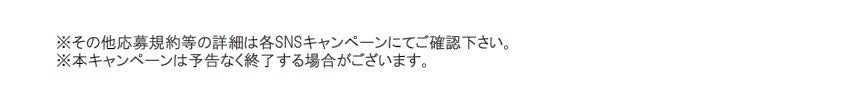 ※その他応募規約等の詳細は各SNSキャンペーンにてご確認下さい。