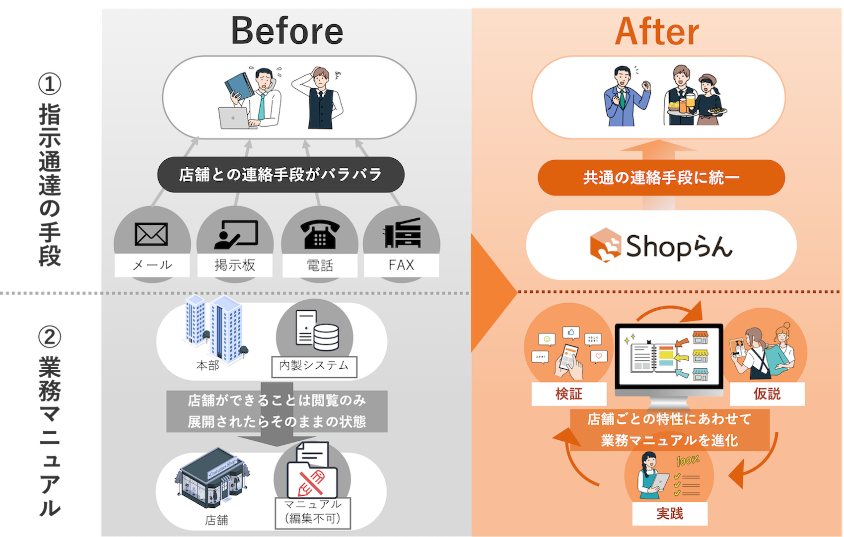 指示通達の整流化:発信内容や頻度の見える化と店舗が本来業務に集中できる環境を再構築