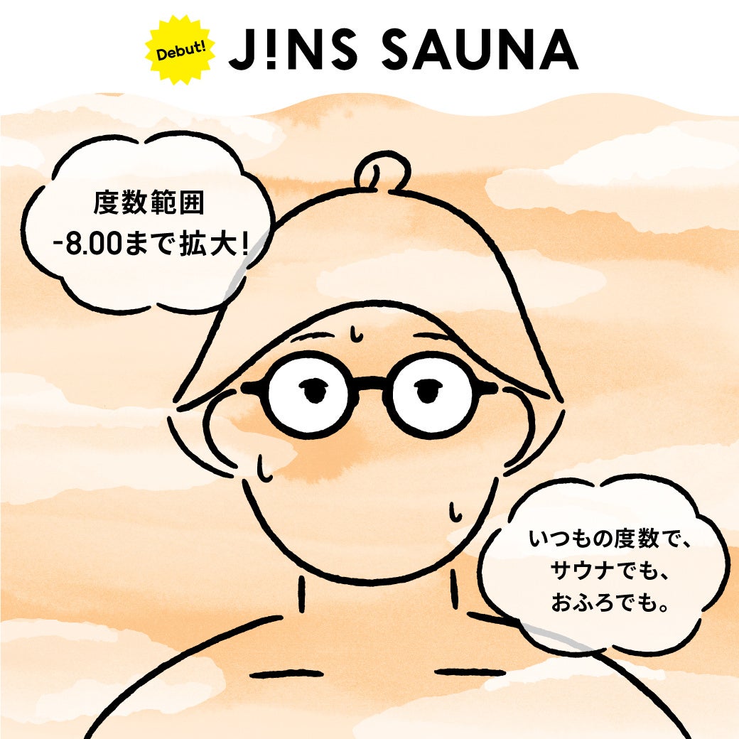 2023年2月に発売した「JINS SAUNA」は、日常でもサウナでもおふろでも使えるメガネです。耐熱温度120℃でくもりにくくさびにくく、ご自身の度数でつくることができるのが特長。サウナや慣れない浴場、おふろでのスマホなど様々なシーンで活躍すると好評を得ています。発売以来、多くのお客様からレンズの度数範囲拡大のご要望をいただき、急ピッチで生産態勢の拡充を行ってきました。これまでSPH-6.00までだったところ、遂に本日よりSPH-8.00まで作成可能になり、より多くの方にお買い求めいただけるようになりました。度数範囲拡大のご要望を届けて下さった多くのお客様に心よりお礼申し上げます。大変お待たせいたしました!