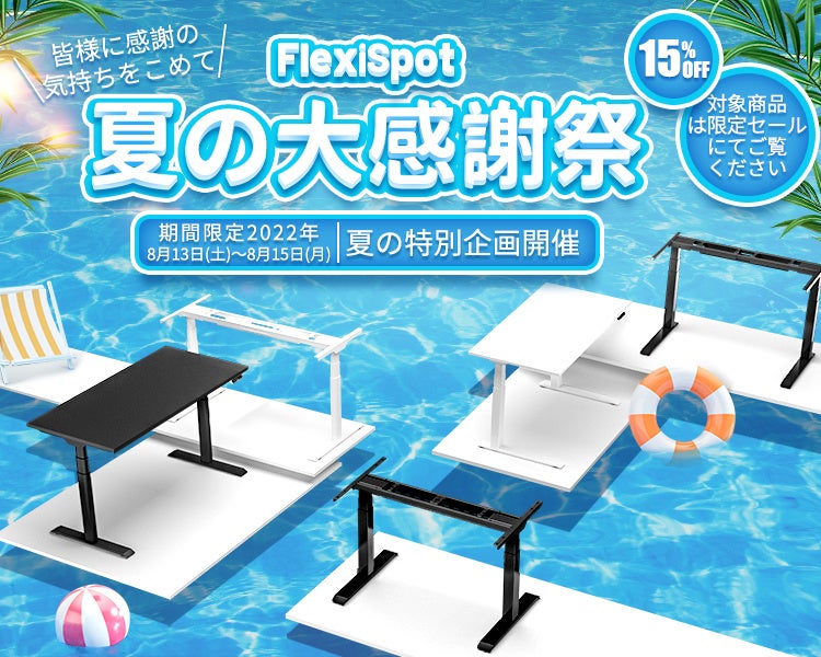 【人気商品15%OFF】FlexiSpot「夏の大感謝祭」が8月13日~15日に開催!