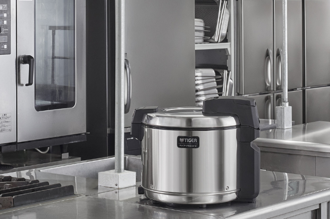 本製品は50年以上愛され続けているブランド「炊きたて」の業務用保温電子ジャーに真空保温を採用。真空ポンプにより最長約16時間連続での真空保温を可能にしました。仕込み過ぎなどによる余ったごはんを廃棄せずに真空保温することで、閉店後のごはんの廃棄作業も不要になり、外食産業の食品ロス問題の改善に貢献いたします。