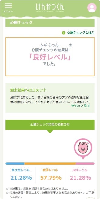 『けんかつくん』は、この腸内フローラ測定の申込みや測定結果の確認などを行う専用サイトです。また、アニコム損保のペット保険には、年1回の「どうぶつ健活(腸内フローラ測定サービス) 」が無料で付帯されており(一部商品を除く(※3))、ご契約者を中心に多くの方々に利用いただいています。