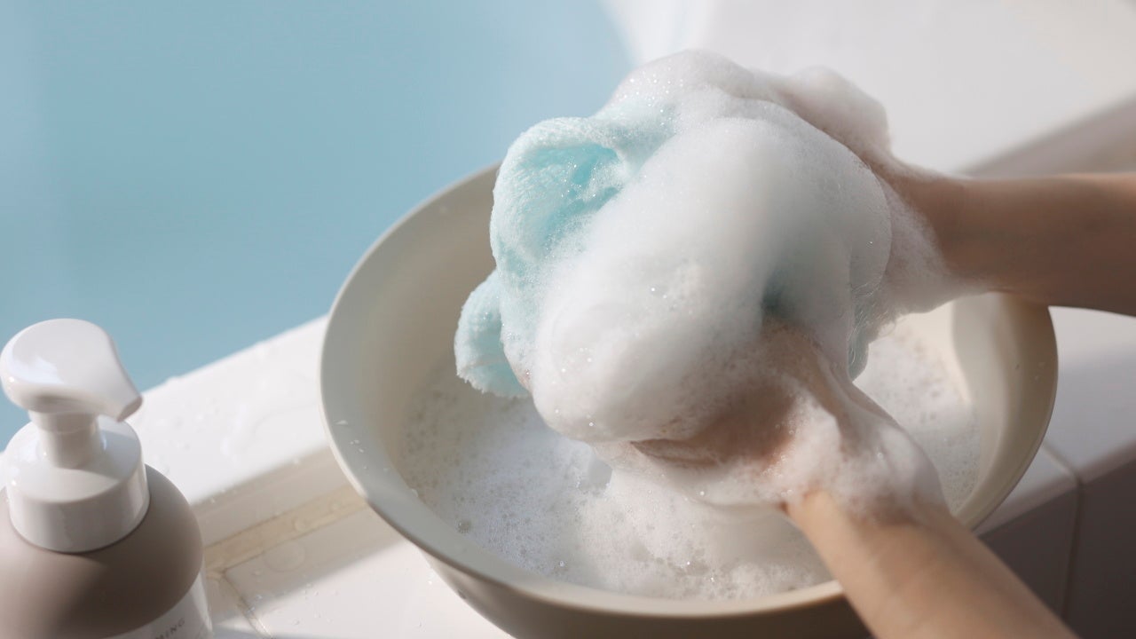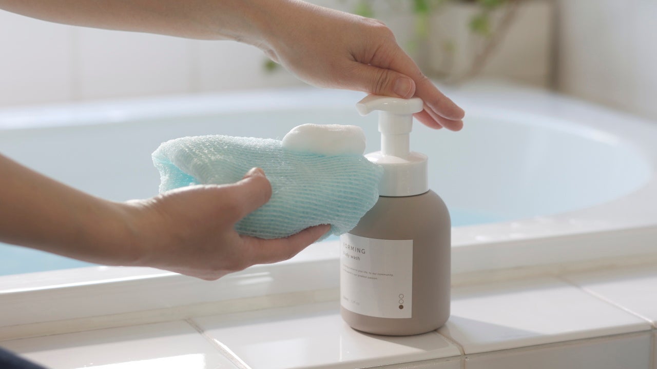 1プッシュで約30倍に泡立つ、泡ソープ専用のボディタオル『あわわんボディタオル』が新発売。