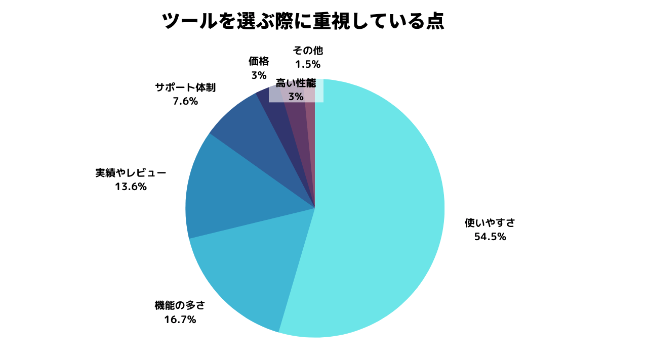 ツールを選ぶ際に最も重視している点は何かという質問に対する回答は以下のとおりでした。(単一回答)