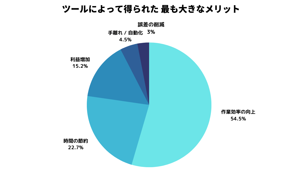 ツール利用によって得られた最も大きなメリットは何かという質問に対する回答は以下のとおりでした。