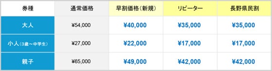 ※NSDキッズプログラムシーズン券はリフト利用専用となります。入場には別途料金が必要となります。