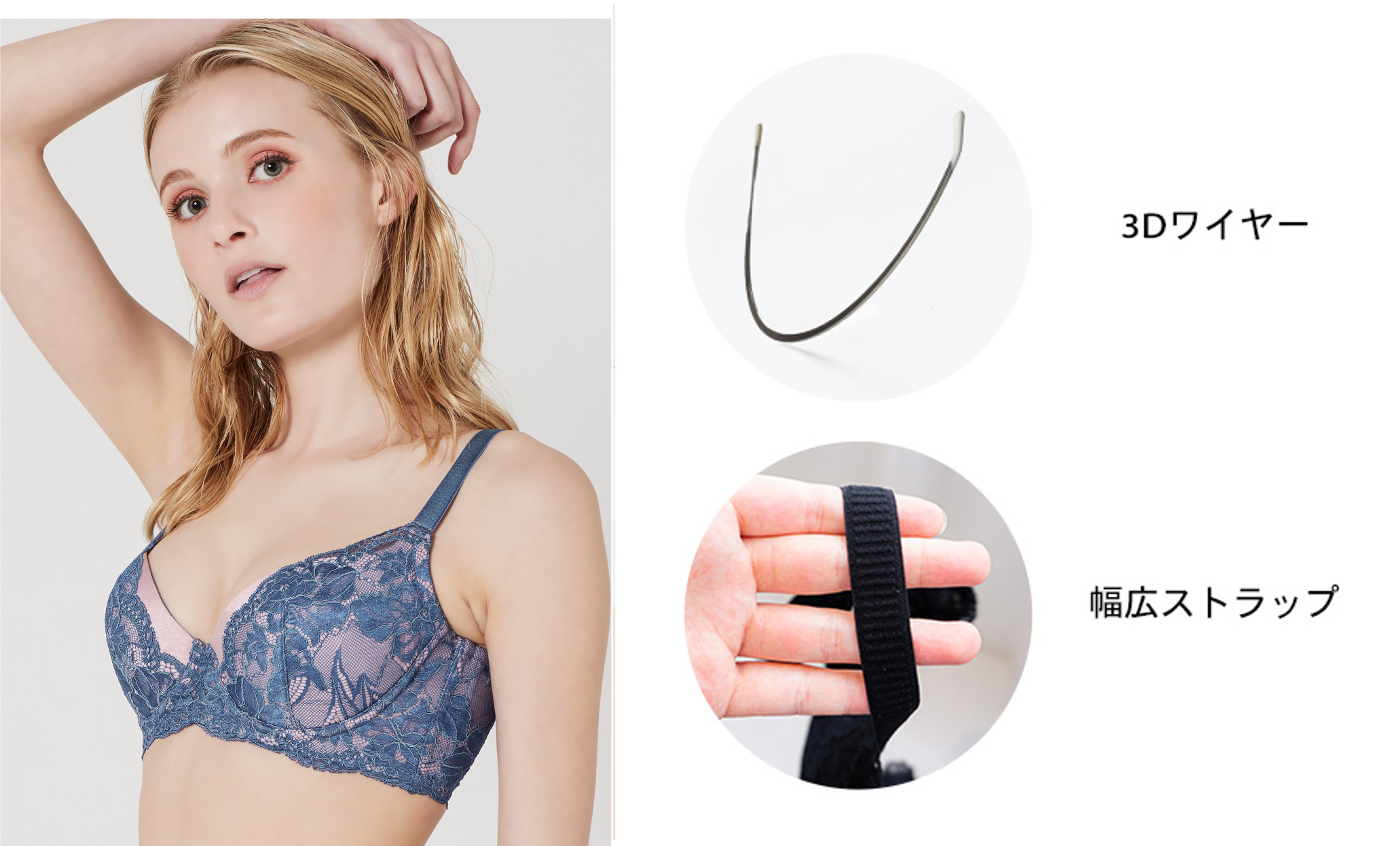 - ワイヤーと幅広ストラップで抜群のフィット感