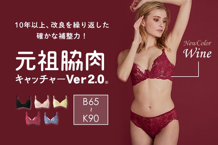 バツグンの補整力で不動の人気No.1。シリーズ累計販売本数75万本突破のロングセラーブラ「元祖脇肉キャッチャーVer2.0」より冬の新色「ワイン」が登場。