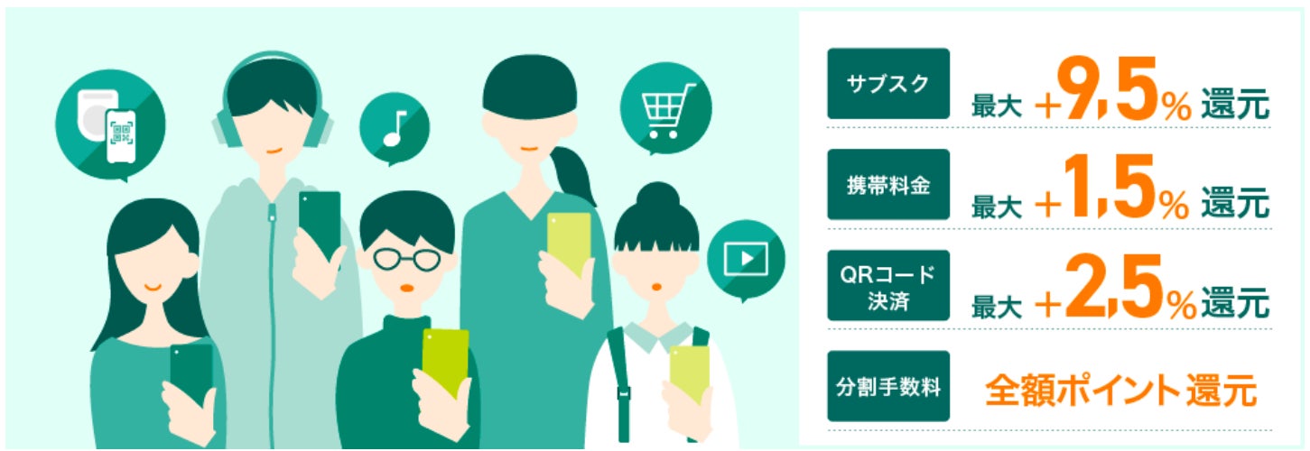 「学生ポイント」は学生の方※1を対象とした新サービスです。特に若年層のお客さまのご利用が多いサブスクリプション・携帯料金・QRコード決済(チャージ&ペイ)について、対象サービスの料金支払いや利用などに対してVポイントを還元します。新生活を迎えられる学生の方の充実したキャッシュレスライフをお届けができる内容となっておりますので、ぜひ、この機会にカードにご入会・ご利用ください。