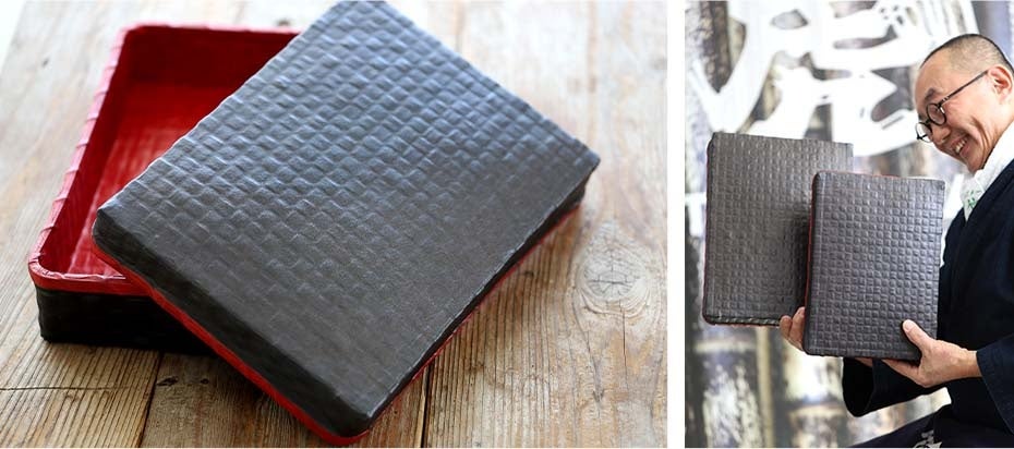 真竹を使う四ツ目編みの下地から美しい、本物の一閑張り文庫を新発売
