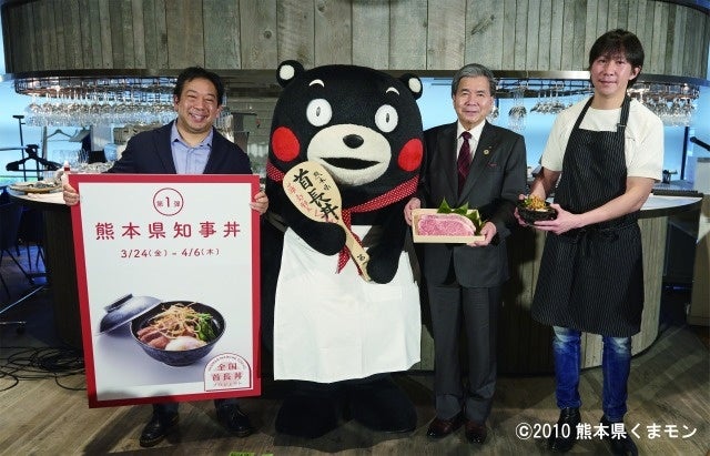 第1弾では熊本県知事の蒲島郁夫氏、くまモン、小山薫堂氏プロデュース、奥野義幸シェフがレシピを考案した熊本県への愛情が詰まった「熊本のおいしさぎゅうぎゅう!熊本県知事丼」が誕生しました。