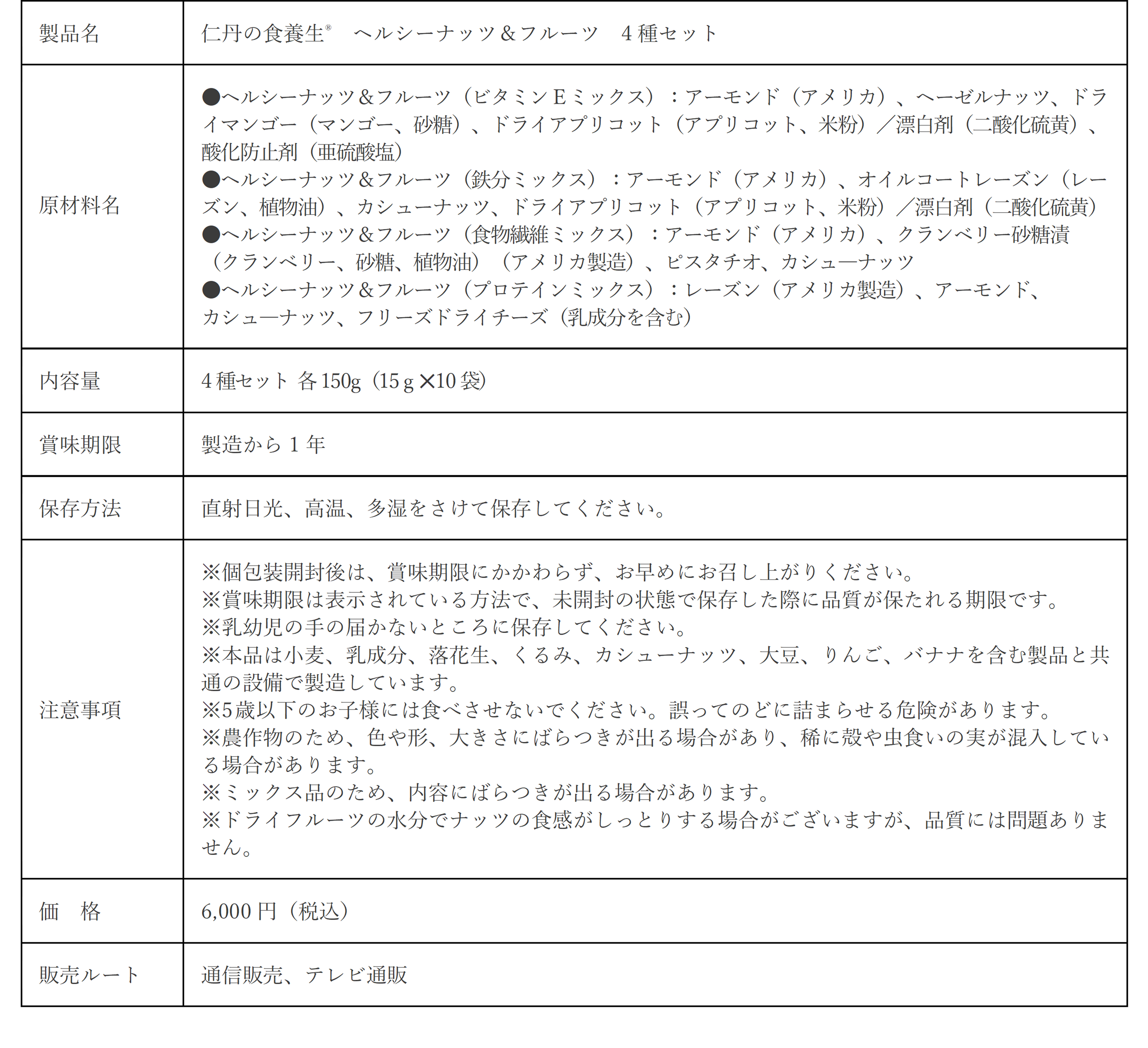 明日のキレイは今日のナッツから。ナッツで「食養生」をはじめましょう。仁丹の食養生「ヘルシーナッツ&フルーツ」新発売