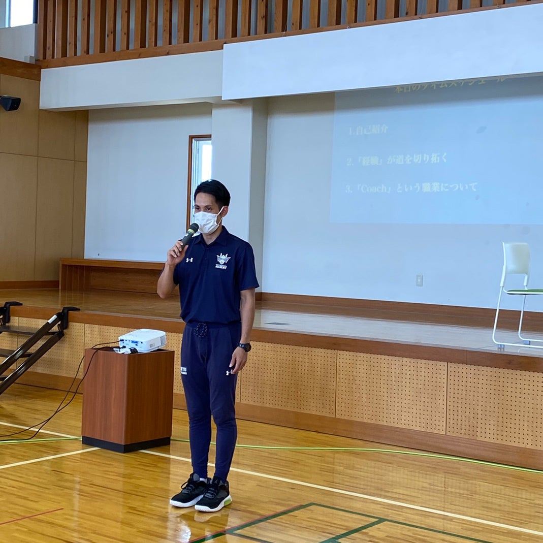 今回、講演では「チャレンジする大切さ」、そしてバスケットボールでは「仲間と共にバスケットボールを楽しむ」ことに重点を置いて取り組みました。