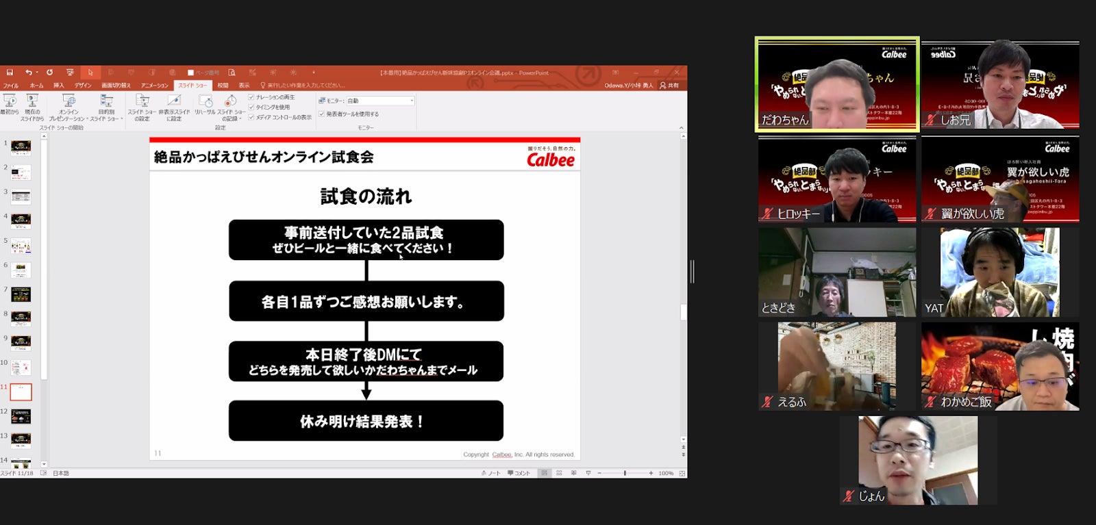 お客様にも参加いただきオンライン試食会を実施、味決定