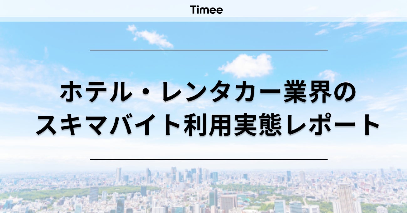 スキマバイトサービス「タイミー」を提供する株式会社タイミー(所在地:東京都港区、代表取締役:小川 嶺)は、旅行や出張などの需要回復により人手不足に直面している「ホテル」「レンタカー」業界のスキマバイト利用実態レポートを公開いたします。