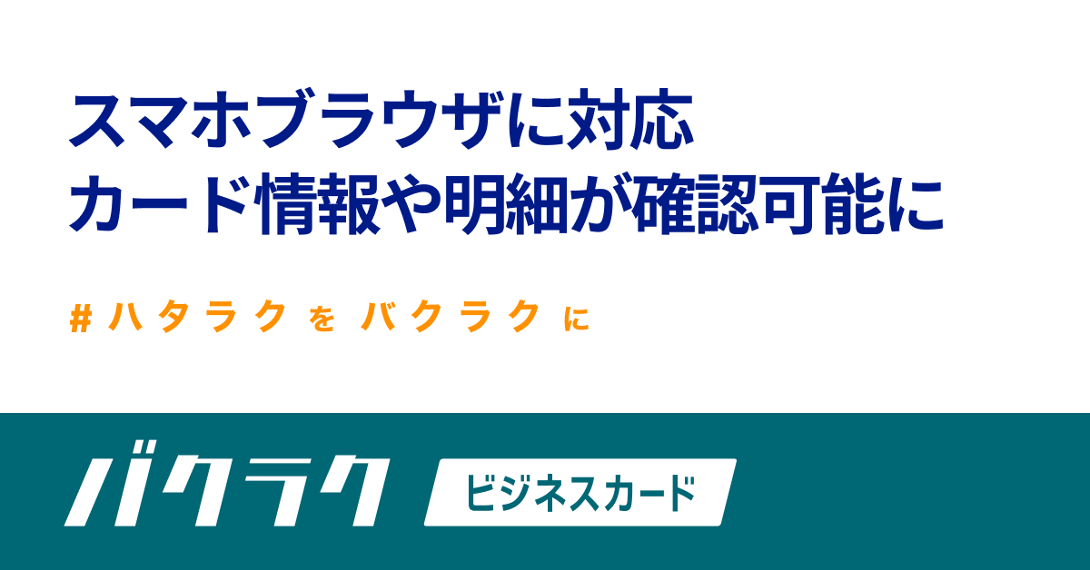 株式会社LayerXが提供する、利用する“前後”の業務もラクになる次世代法人カード「バクラクビジネスカード」は、スマートフォンのブラウザに最適化された画面で、カード情報や利用明細等の確認ができるようになり、さらに便利にご利用いただけるようになりました。