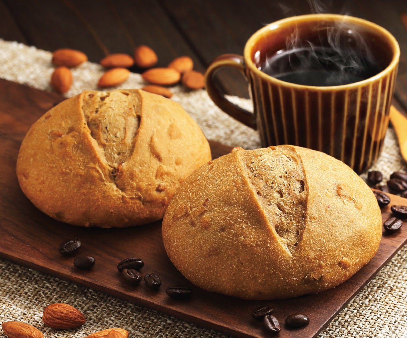 電子レンジで50秒(500W)温めるだけの手軽なふんわりおいしいパンです。コーヒー粉末とローストアーモンド、アーモンドミルクを練り込み、石窯で焼き上げました。コーヒーの苦みを残しつつも何もつけずに食べやすいようにほのかに甘さを感じる味わいに仕上げました。