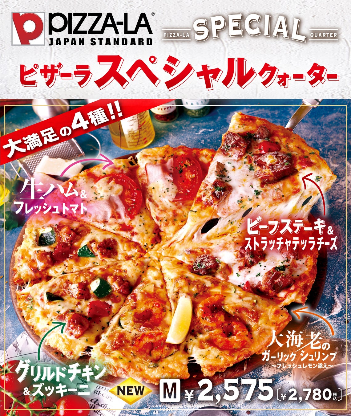 株式会社フォーシーズ(本社:東京都港区南青山 社長:淺野幸子)が展開する宅配ピザ「PIZZA-LA」では、2022年3月3日(木)~の期間限定で、ピザーラで人気の厳選食材を盛り込んだ『ピザーラスペシャルクォーター』を販売いたします。