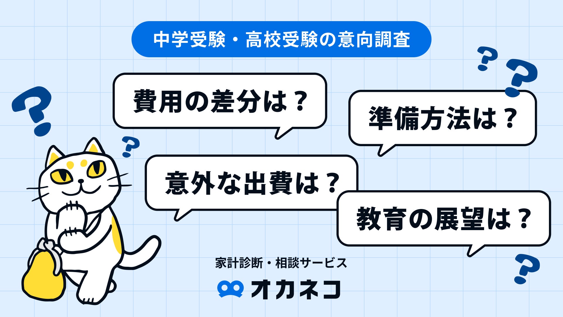 【オカネコ 中学受験と高校受験の意向調査】受験費用の差は約1.7倍!NISA活用で費用捻出も、約4人に1人が教育費用の見通しが不透明...