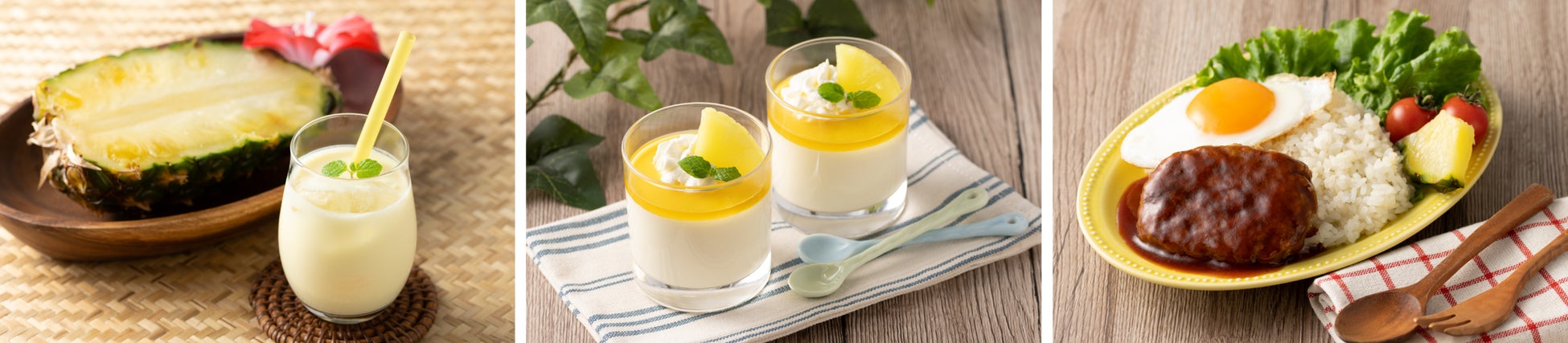 日本の主要生産地として人気の高い沖縄県産のパイン果汁を使用。沖縄県産のパインは完熟してから収穫するため、糖度が高いことが特徴です。その中でも酸味と甘さのバランスが良くジューシーな果汁を使用しています。また、容器にはアルミパウチを使用し、素材のおいしさ、品質をそのまま保持させています。