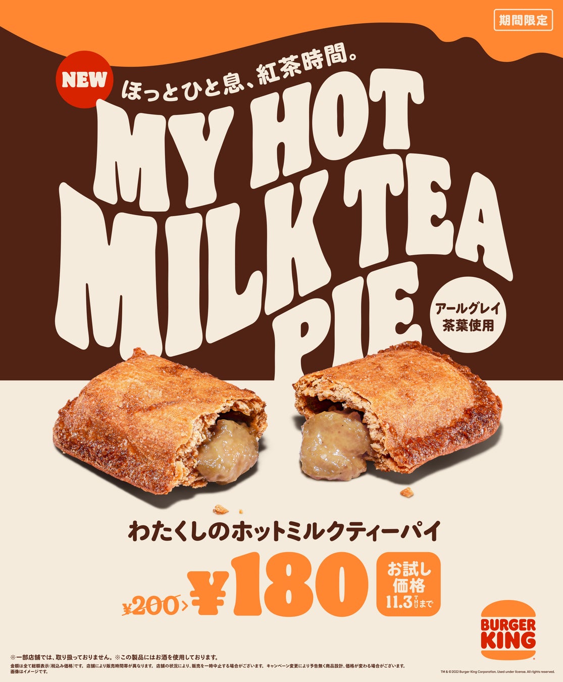 ほっとひと息ついて自分の時間を楽しみたい時やお好みのバーガーのデザートに、ぜひ『わたくしのホットミルクティーパイ』をご賞味ください。今後も『わたくしの』デザートシリーズを展開してまいります。続報にもご期待ください。