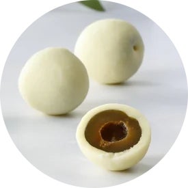 グラッセしたオリーブをホワイトチョコレートでコーティングした、大人味の一品です。