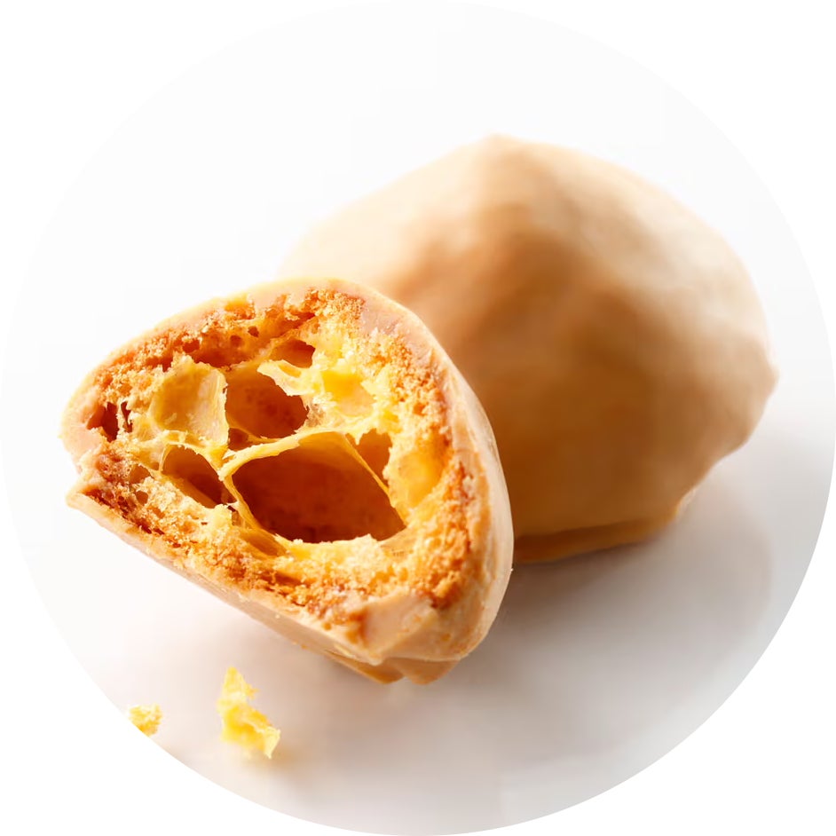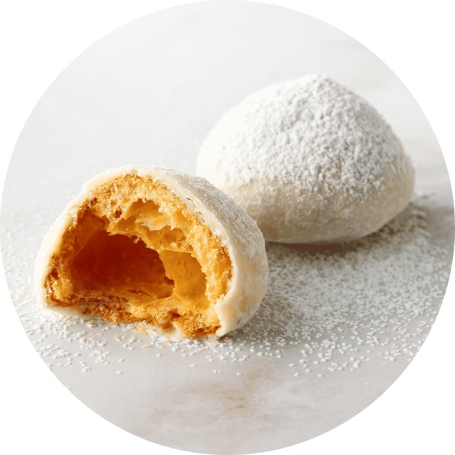 サクサクのシュー生地をホワイトチョコレートで包み、ホワイトシュガーをまとわせました。
