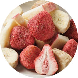 いちご・りんご・バナナのフリーズドライフルーツとホワイトチョコレートが相まった美味しさです。