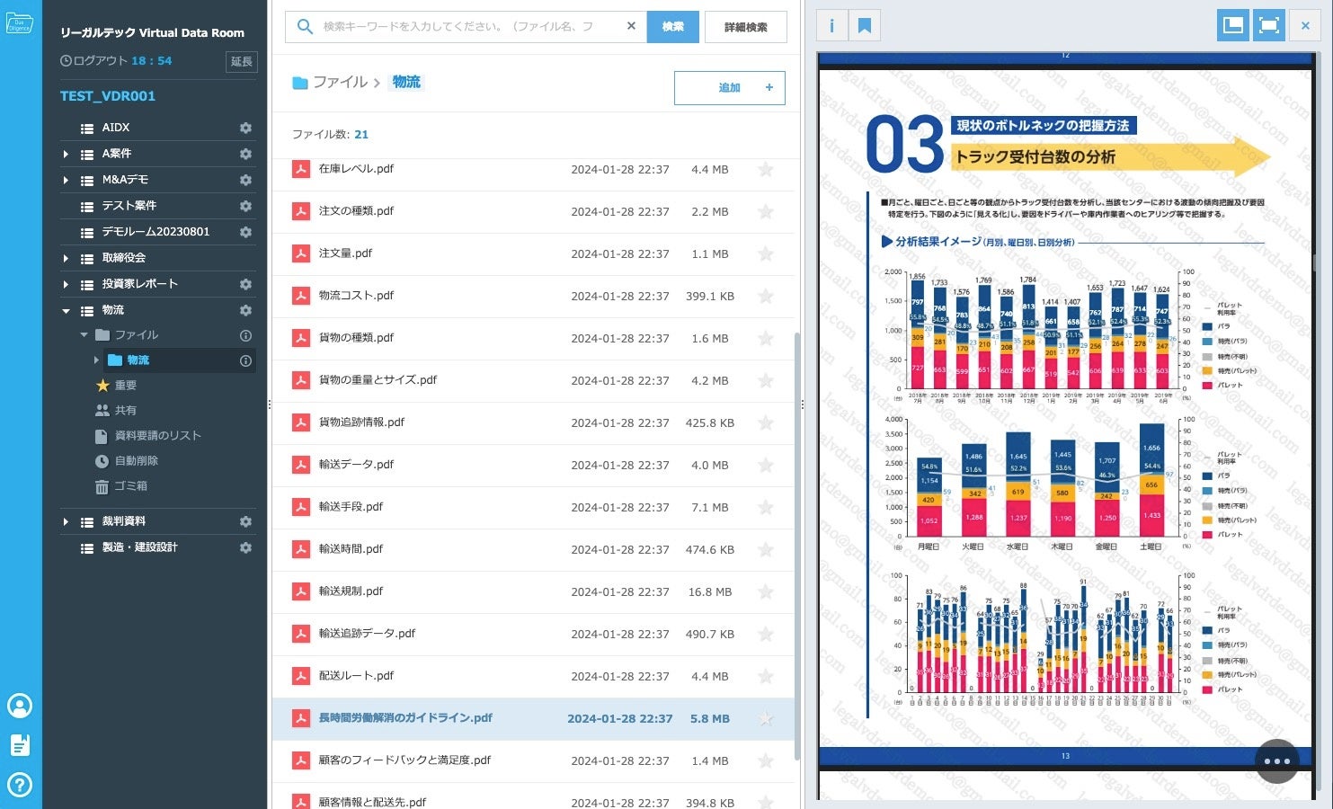 「リーガルテックVDR 物流」は高度なセキュリティ機能を備えており、機密情報の保護に優れています。