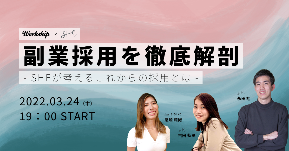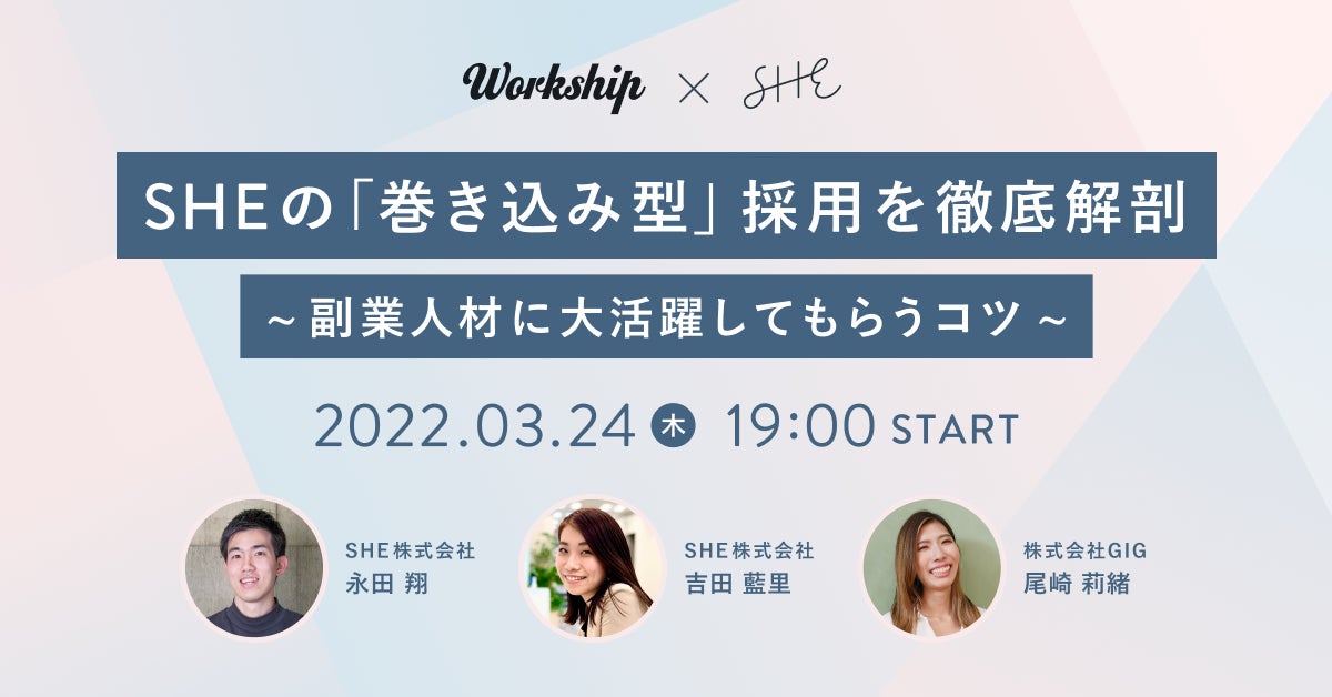 【ウェビナー開催】【SHE × Workship】SHEの「巻き込み型」採用を徹底解剖 〜副業人材に大活躍してもらうコツ〜