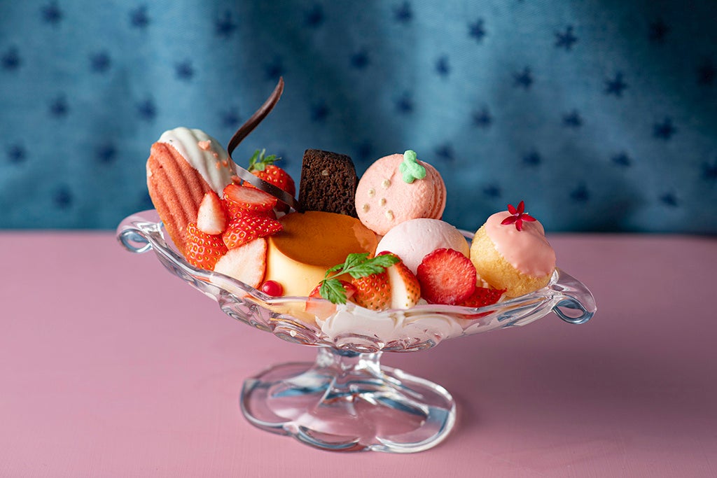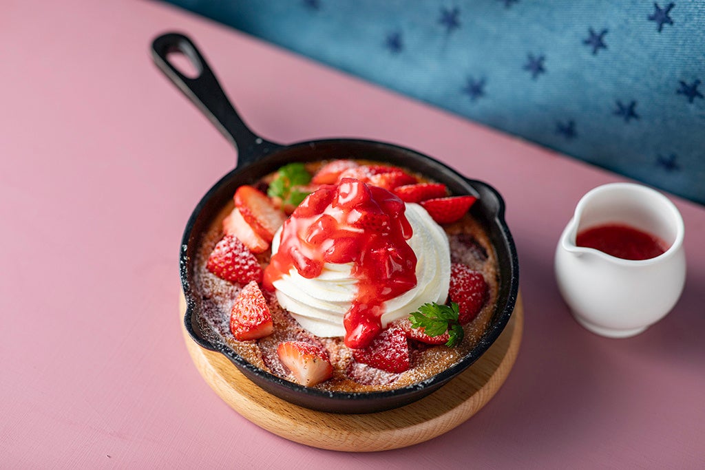 牛乳と全卵で作り上げた昔ながらの堅めのプリンで彩り豪華な「プリン・ア・ラ・モード」や、お客様の目の前でフィルムを外し、マスカルポーネと抹茶のクリームがとろけだすサプライズも楽しめる「苺と抹茶のなめらかティラミス」、オーブンでじっくり焼き上げた寒い時期におすすめの温かい「苺のクラフティ」は、フレッシュな苺とバニラアイスクリーム、生クリームで心を揺さぶる満足感が味わえます。また2024年の調理従事者対象の”社内料理コンテスト”で優秀賞に輝いた「大福うさぎと苺のパフェ」や、「苺と生ハム・モッツアレラチーズのパニーニ」、サウスコートの定番メニューとして人気の東京都立川市の濃厚たまごと国産小麦で焼き上げたスクエア型の自家製パンと東京多摩のはちみつが苺との相性抜群の「フレンチトースト」など、新作から定番まで苺の香りが漂う全6品です。