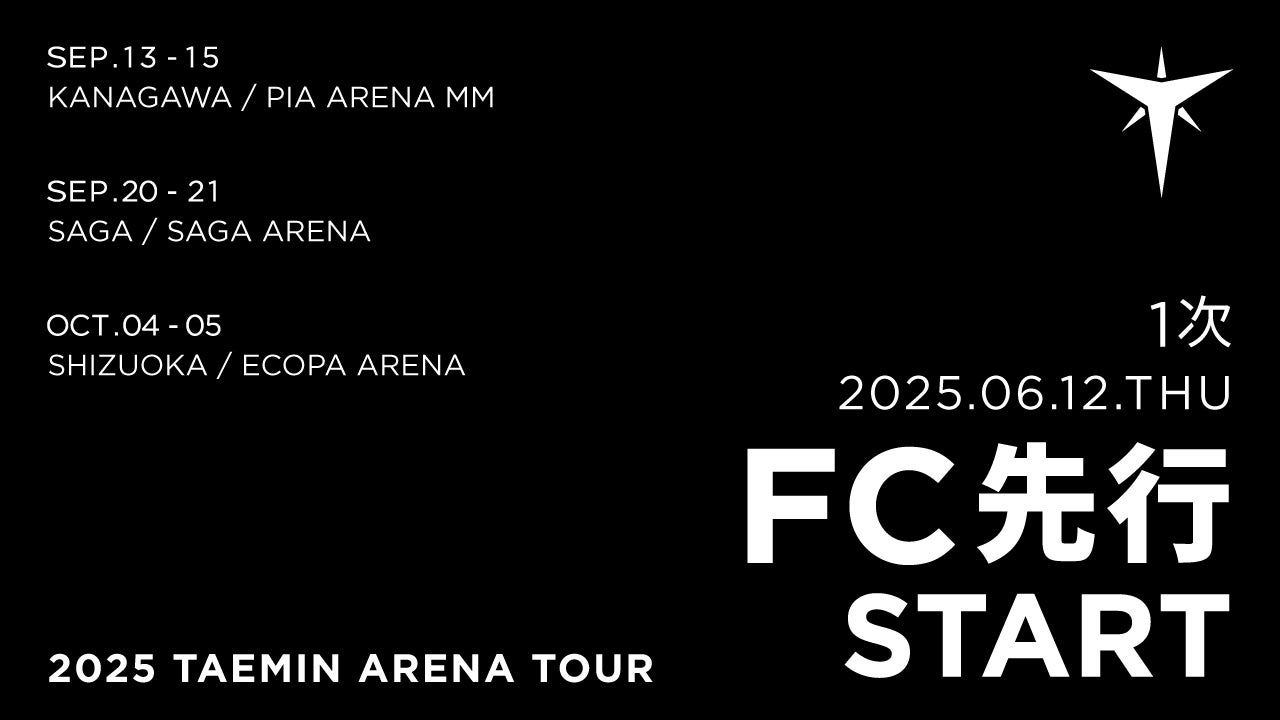 『2025 TAEMIN ARENA TOUR』神奈川・佐賀・静岡公演 本日6月12日(木)18時よりファンクラブ先行1次(抽選)受付開始!