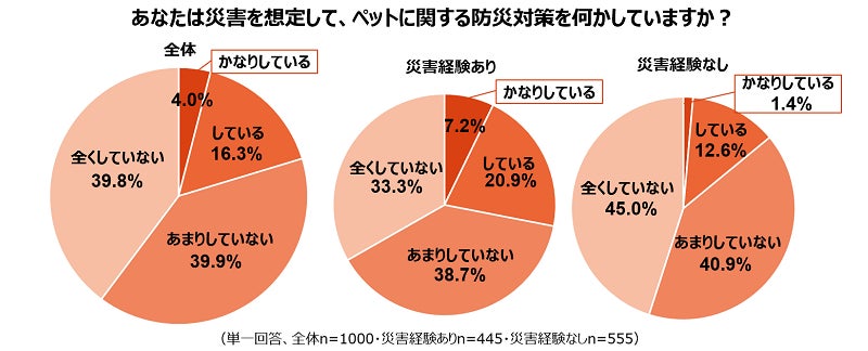 アイペット損害保険株式会社(本社:東京都江東区、代表取締役 執行役員社長:安田敦子 以下、当社)は、犬・猫(以下、「ペット」)飼育者の1,000名を対象に、ペットのための防災対策に関するアンケート調査を実施しました。今年で8回目となる本調査では、はじめて災害経験*の有無による災害対策実施状況の違い等についても調査しました。