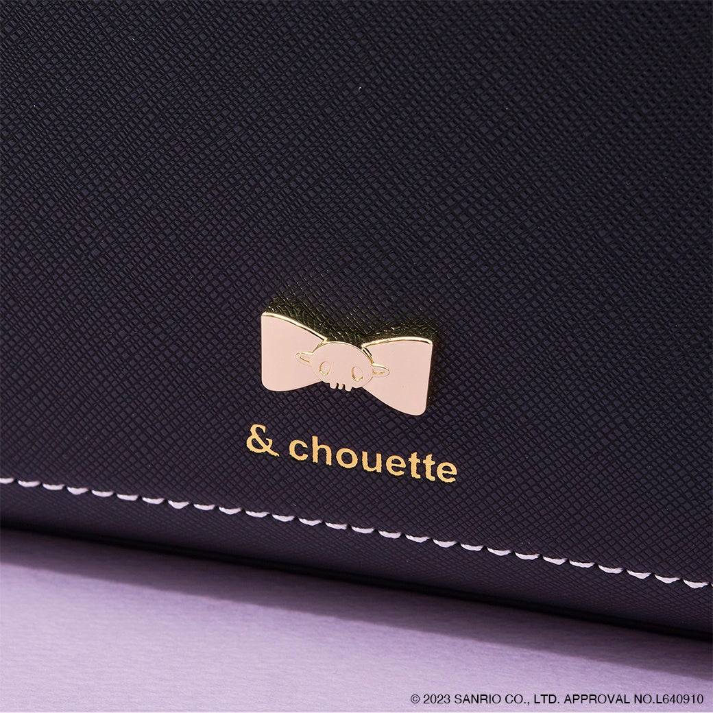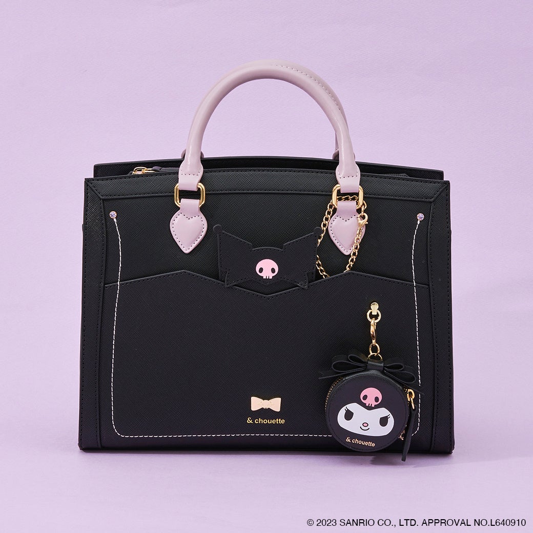 クロミのイメージカラー・ブラックとパープルでデザインしたバッグ。フロント部分のポケットはクロミをイメージしたカッティングに。