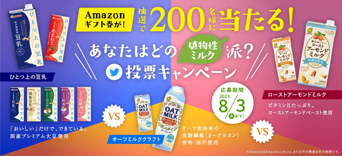 <Amazonギフト券が抽選で200名様に当たる!>『あなたはどの「植物性ミルク」派?Twitter投票キャンペーン』実施