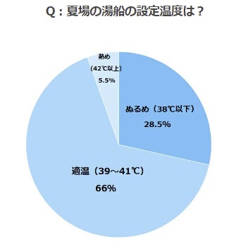 アンケート結果では、夏場はぬるめの設定で入る人が多いと思われましたが、こちらは適温という回答が66%となりました。