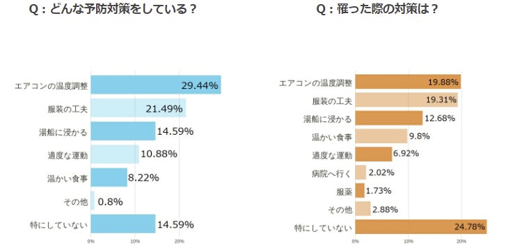罹ったのちの対策としても、特にしていないという意見を除くとエアコンの温度調整・服装の工夫という意見がトップとなっています。