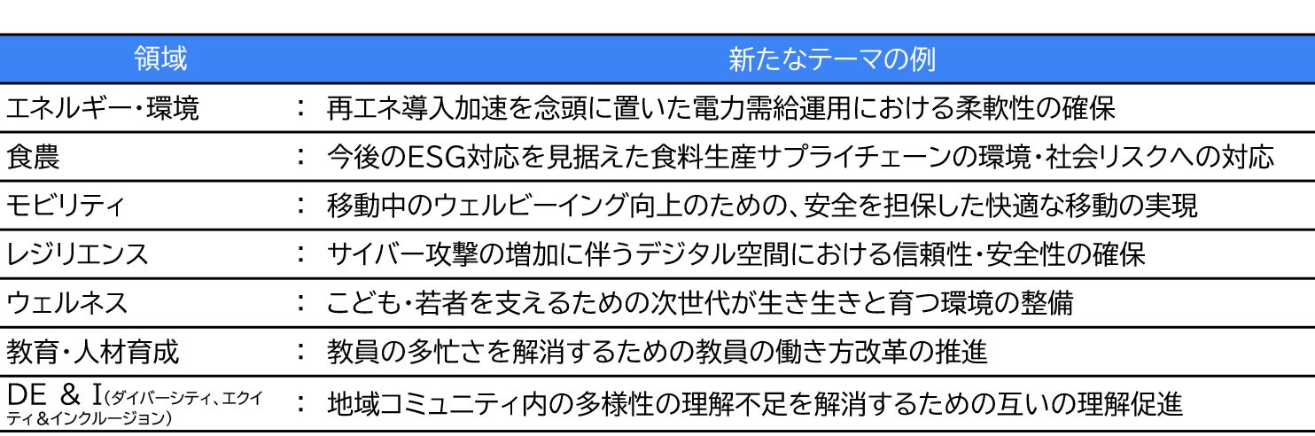 株式会社三菱総合研究所(代表取締役社長:籔田健二、以下 MRI)は、「イノベーションによる解決が期待される社会課題リスト2025」を公開しました。気候変動対策、少子高齢化や都市部へのさらなる人口集中、アンコンシャスバイアスによる生きづらさの悪化など、「地球」「社会」「ヒト」の観点から従来の6領域の位置づけを捉えなおすとともに、第7の領域として「DE & I(ダイバーシティ、エクイティ&インクルージョン);多様性・公平性・包括性」を新設しました。