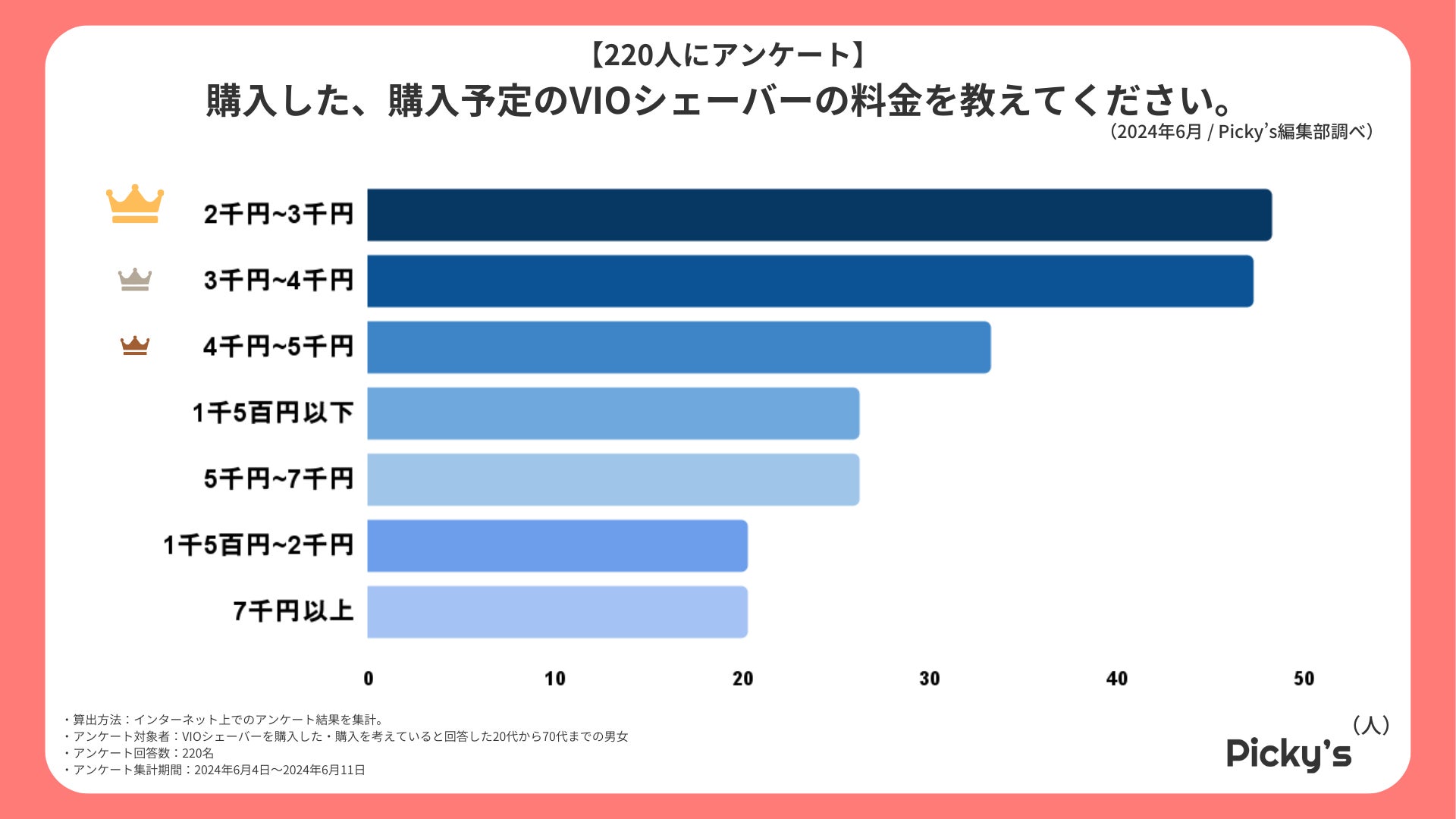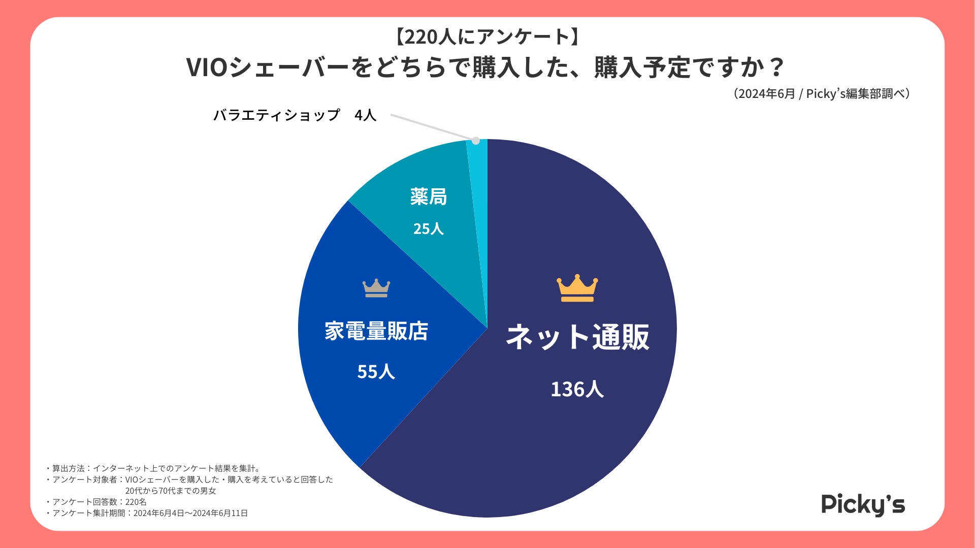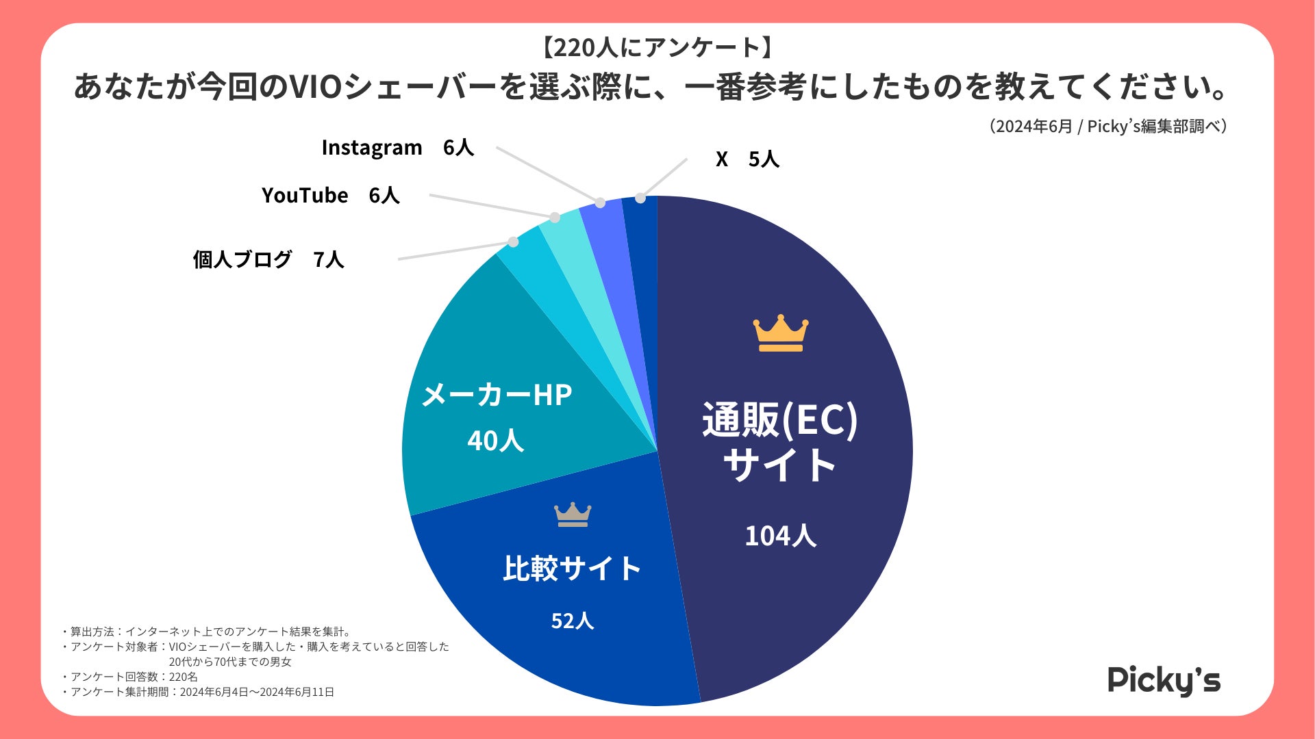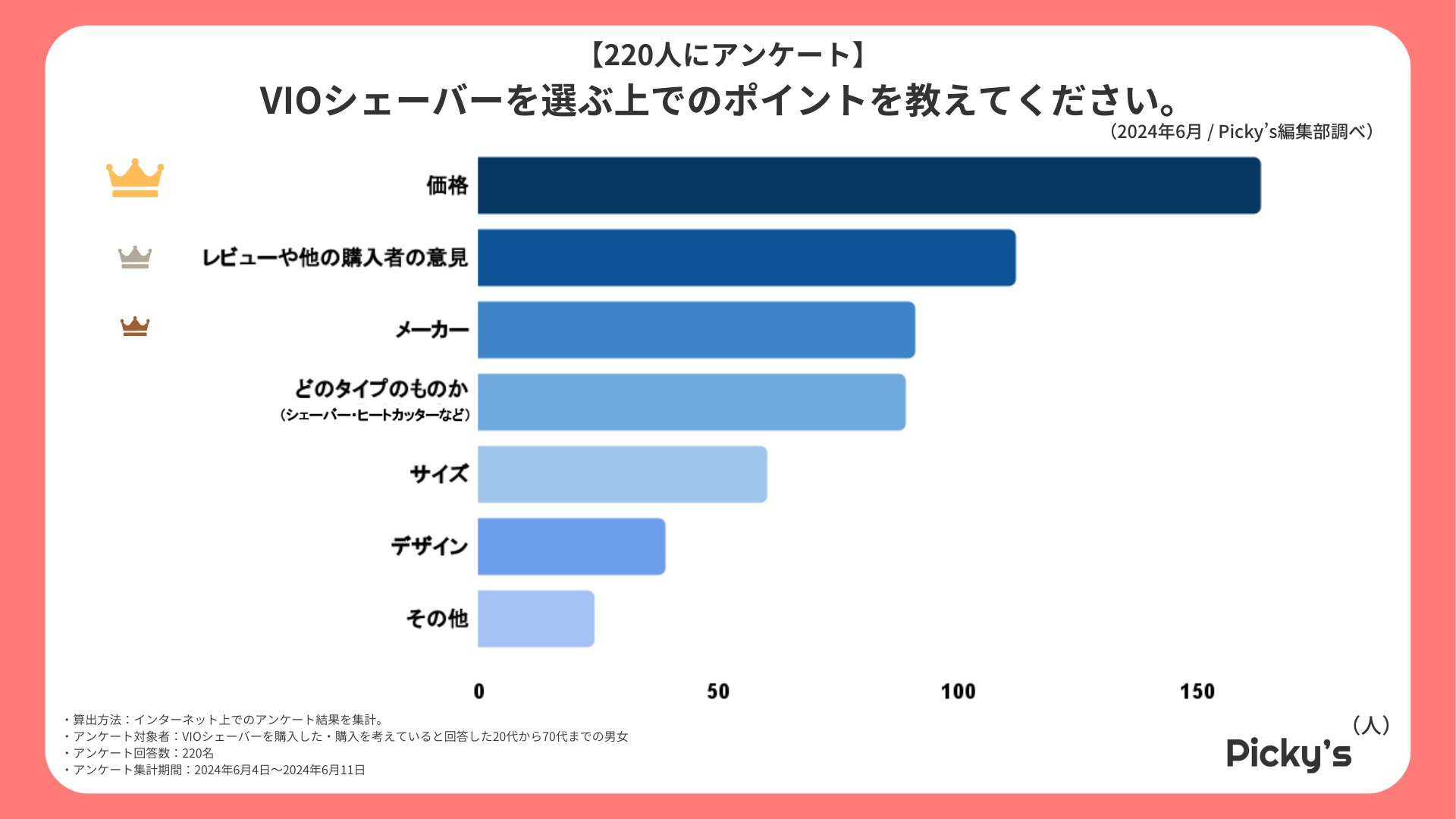 「Picky’s」は、インターネットショッピングにおいて、購入前に試せない・選ぶべきものがわからないという課題の解決を目標に、あらゆる商品のおすすめランキングや検証レビューを紹介するサイトです。このたびPicky’s(https://rentry.jp/)では、夏需要に先駆けて、VIOシェーバーについてインターネット上でアンケート調査を行いましたので発表いたします。