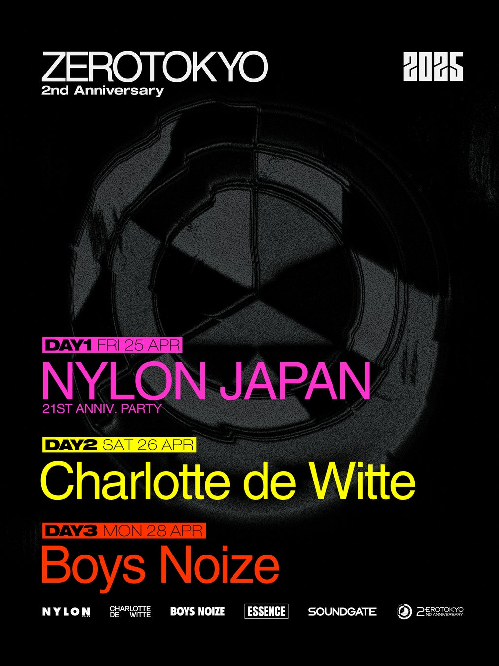 DAY1は、日本のファッション&カルチャーをリードする「NYLON JAPAN」による21周年記念パーティー。DAY2には、DJ Magによる人気DJランキング「Top 100 DJs」で4年連続No.1テクノDJに輝くCharlotte de Witteが登場。そしてDAY3は、ベルリン発のエレクトロニック・ミュージックの先駆者であり、唯一無二のサウンドデザインでシーンを牽引し続けるBoys Noizeが登場します。