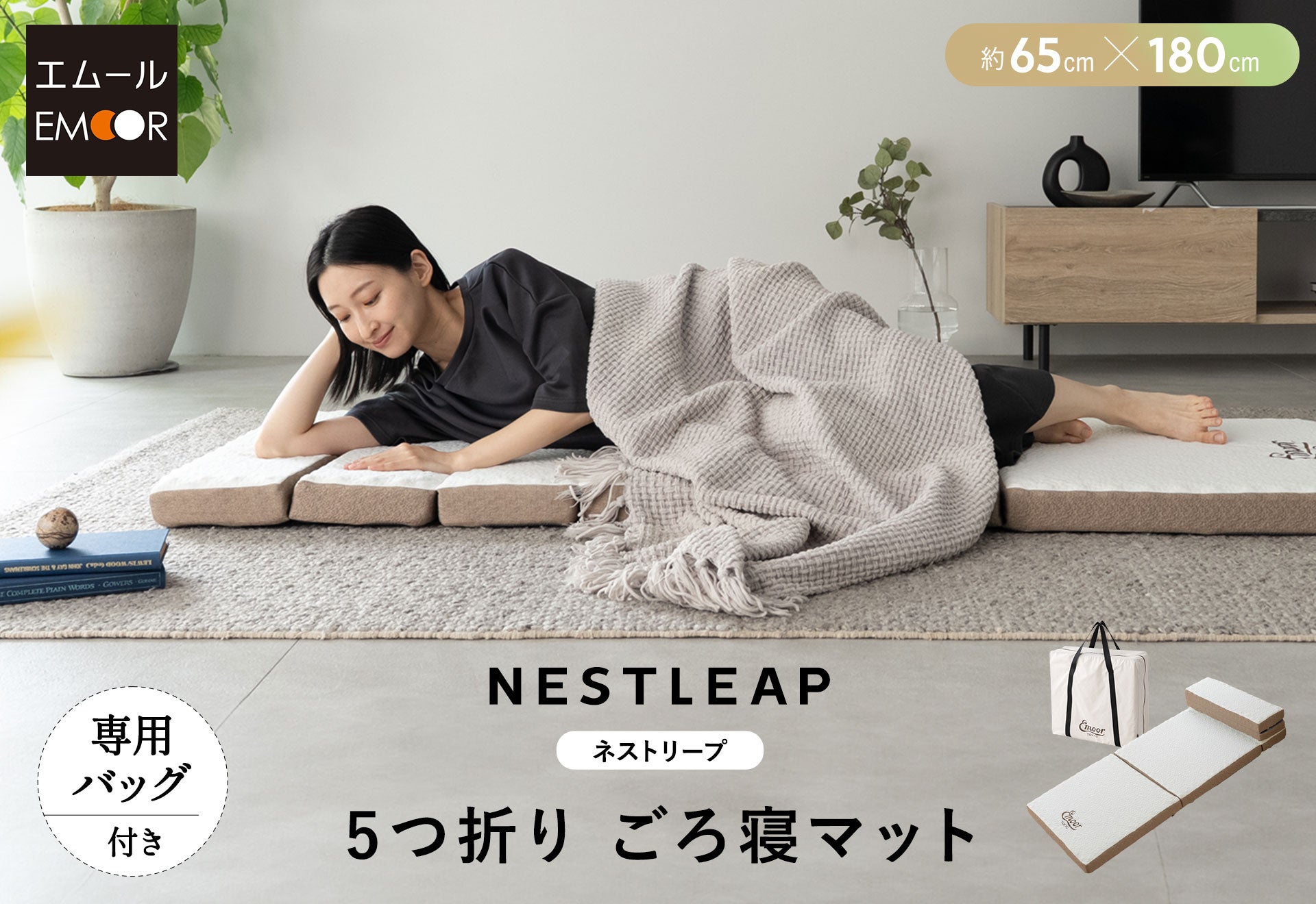 「身体に合った寝る・座る・たたむ」を提供する健康家具ブランドEMOORを展開する株式会社エムール(東京都立川市:代表取締役 高橋 幸司/以下エムール)は、2025年11月11日より『5つ折りごろ寝マット -NESTLEAP-(以下、ネストリープごろ寝マット)』の販売を開始しました。